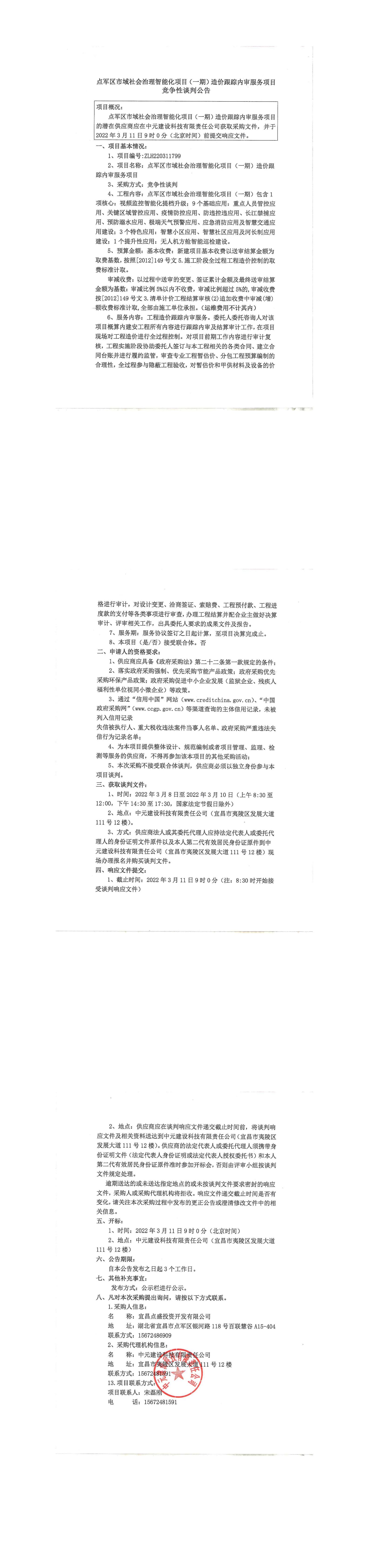 點(diǎn)軍區(qū)市域社會治理智能化項(xiàng)目(一期)造價跟蹤內(nèi)審服務(wù)項(xiàng)目談判公告