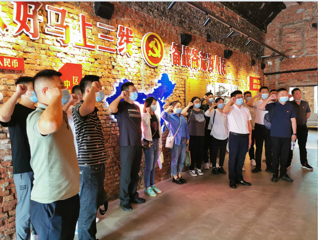 全體黨員赴809微小鎮(zhèn),參觀809廠房原貌和“三線”軍工建設(shè)展覽館,一張張照片,一件件物品,都讓黨員們更加清晰的了解了“三線”建設(shè)的背景和成果,感受了三線建設(shè)者們在特定歷史條件下“艱苦創(chuàng)業(yè)、無私奉獻(xiàn)、團(tuán)結(jié)協(xié)作、勇于創(chuàng)新”的“三線”精神。全體黨員在展覽館內(nèi)的黨旗下重溫入黨誓詞。