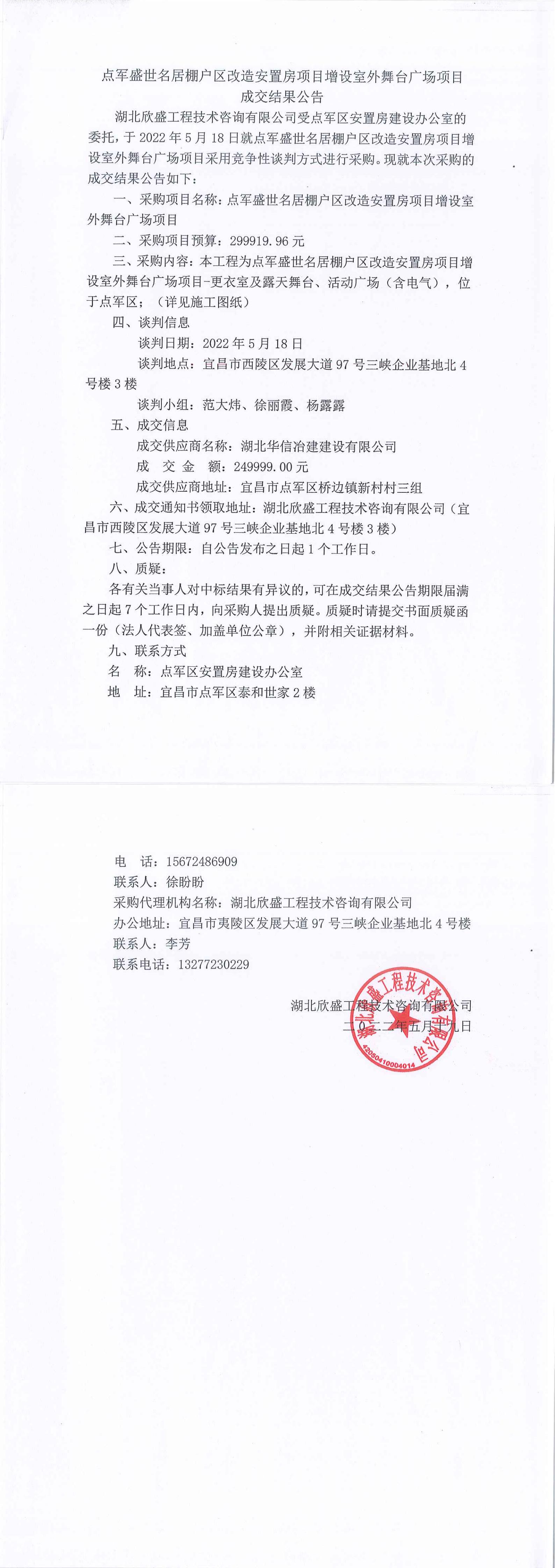 點(diǎn)軍盛世名居棚戶區(qū)改造安置房項目增設(shè)室外舞臺廣場項目成交公告