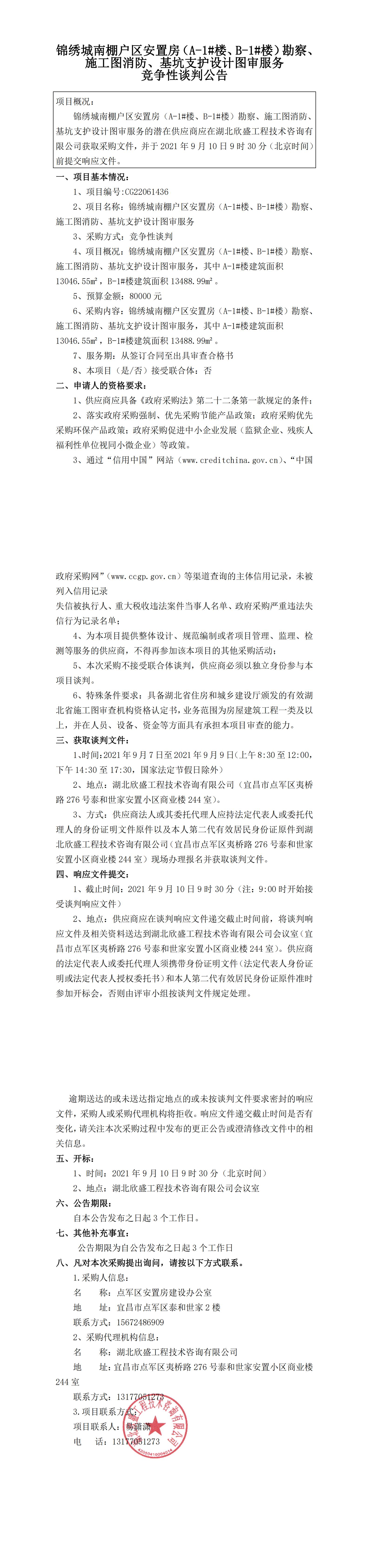 錦繡城南棚戶區(qū)安置房(A-1#樓、B-1#樓)勘察、施工圖消防、基坑支護(hù)設(shè)計(jì)圖審服務(wù)競爭性談判公告