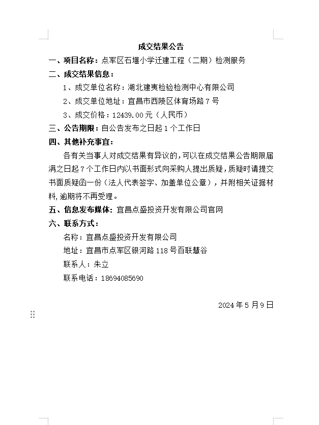 點(diǎn)軍區(qū)石堰小學(xué)遷建工程(二期)檢測(cè)服務(wù)成交公告