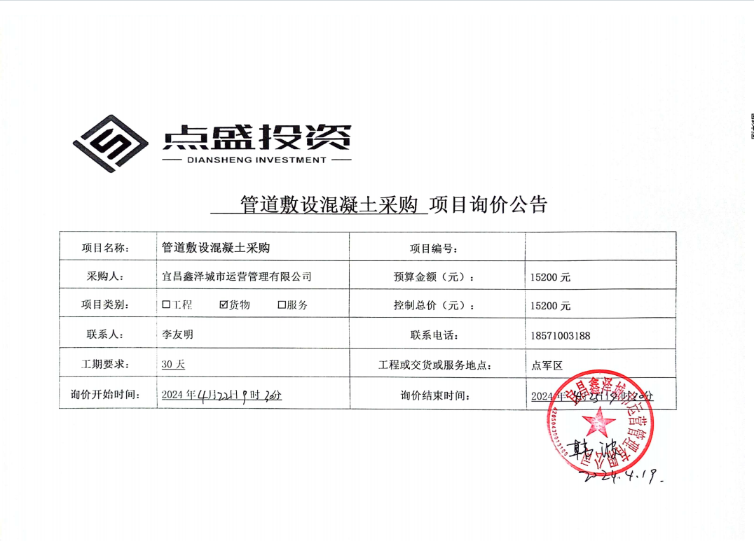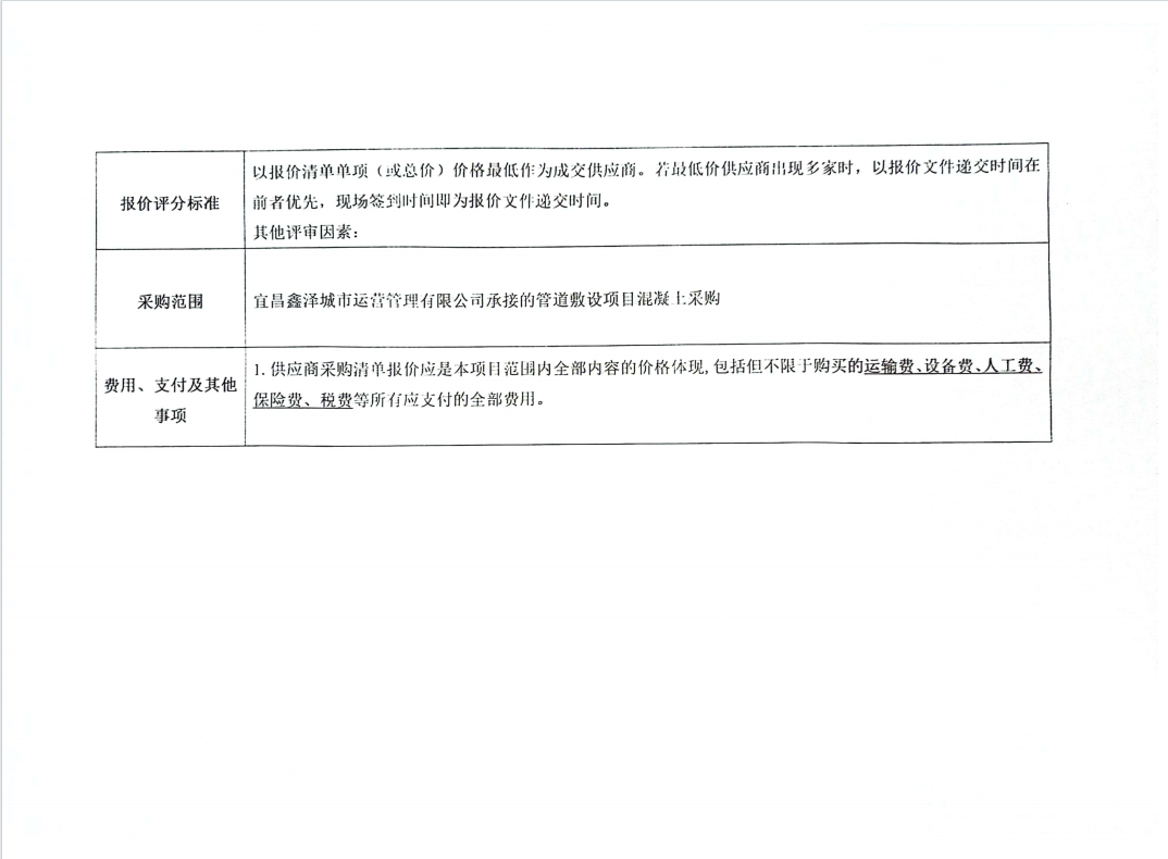 管道敷設(shè)混凝土采購項(xiàng)目詢價(jià)公告