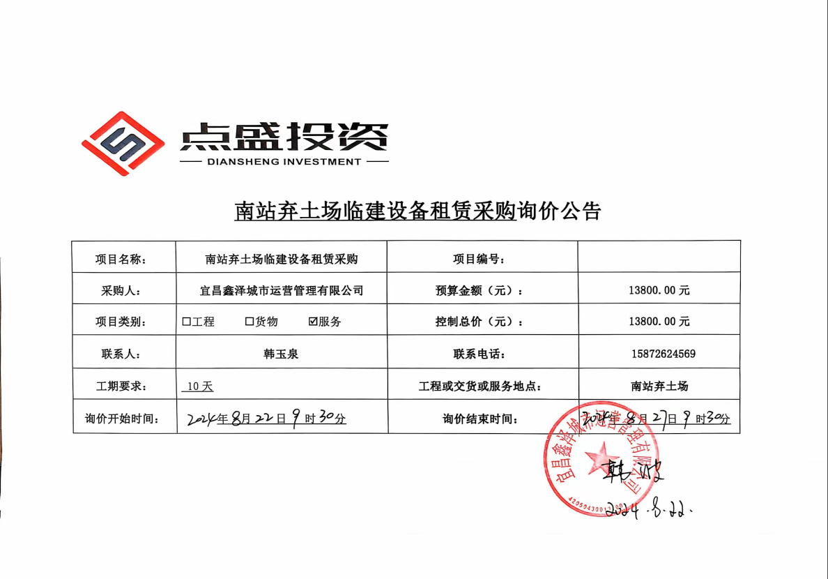 南站路棄土場臨建設備租賃采購項目詢價公告