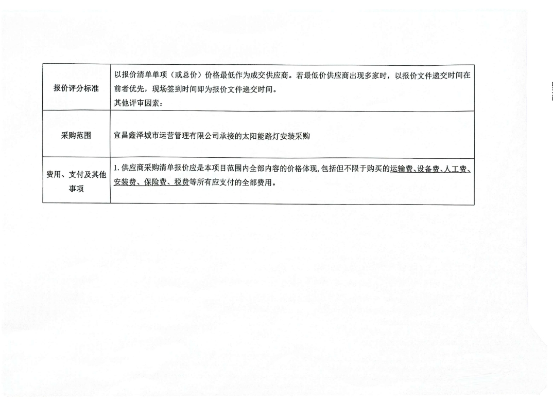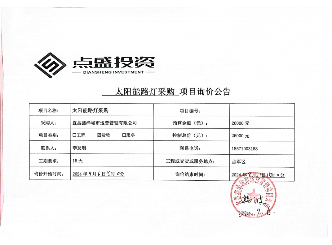 宜昌鑫澤城市運(yùn)營(yíng)管理有限公司太陽(yáng)能路燈采購(gòu)項(xiàng)目詢價(jià)公告